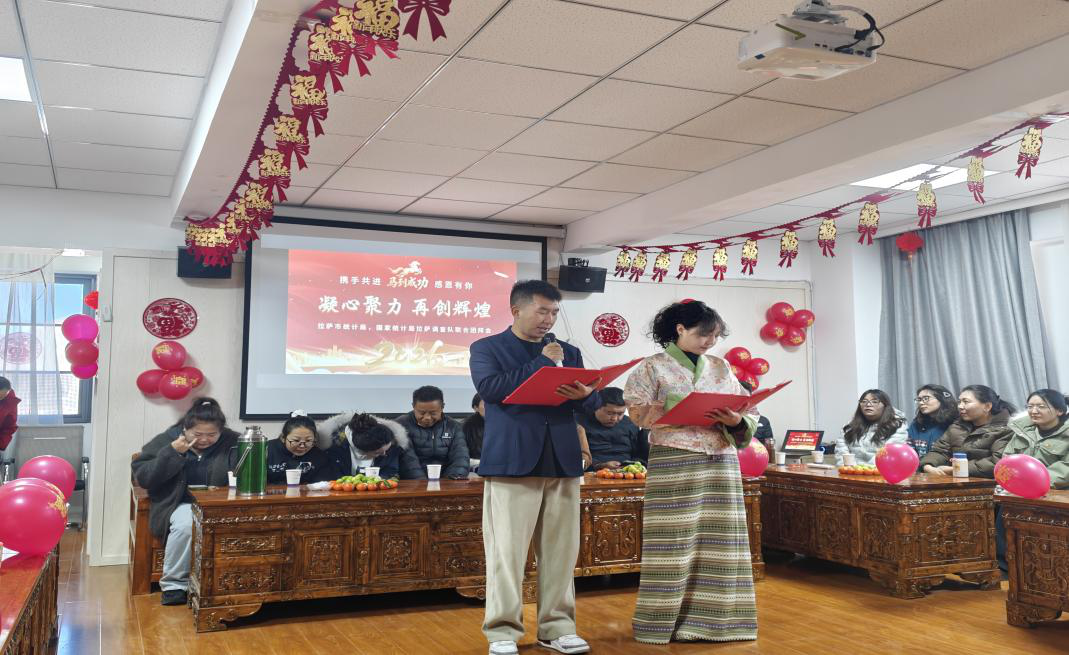 岁聿云暮,新元肇启。为凝聚统计、调查队伍向心力,传递组织关怀与节日温情,2月9日,市统计局联合国家统计局拉萨调查队成功举办年前团拜会。全局(队)在职干部职工欢聚一堂,共忆奋斗征程,共话发展蓝图,喜迎2026丙午马年新春。